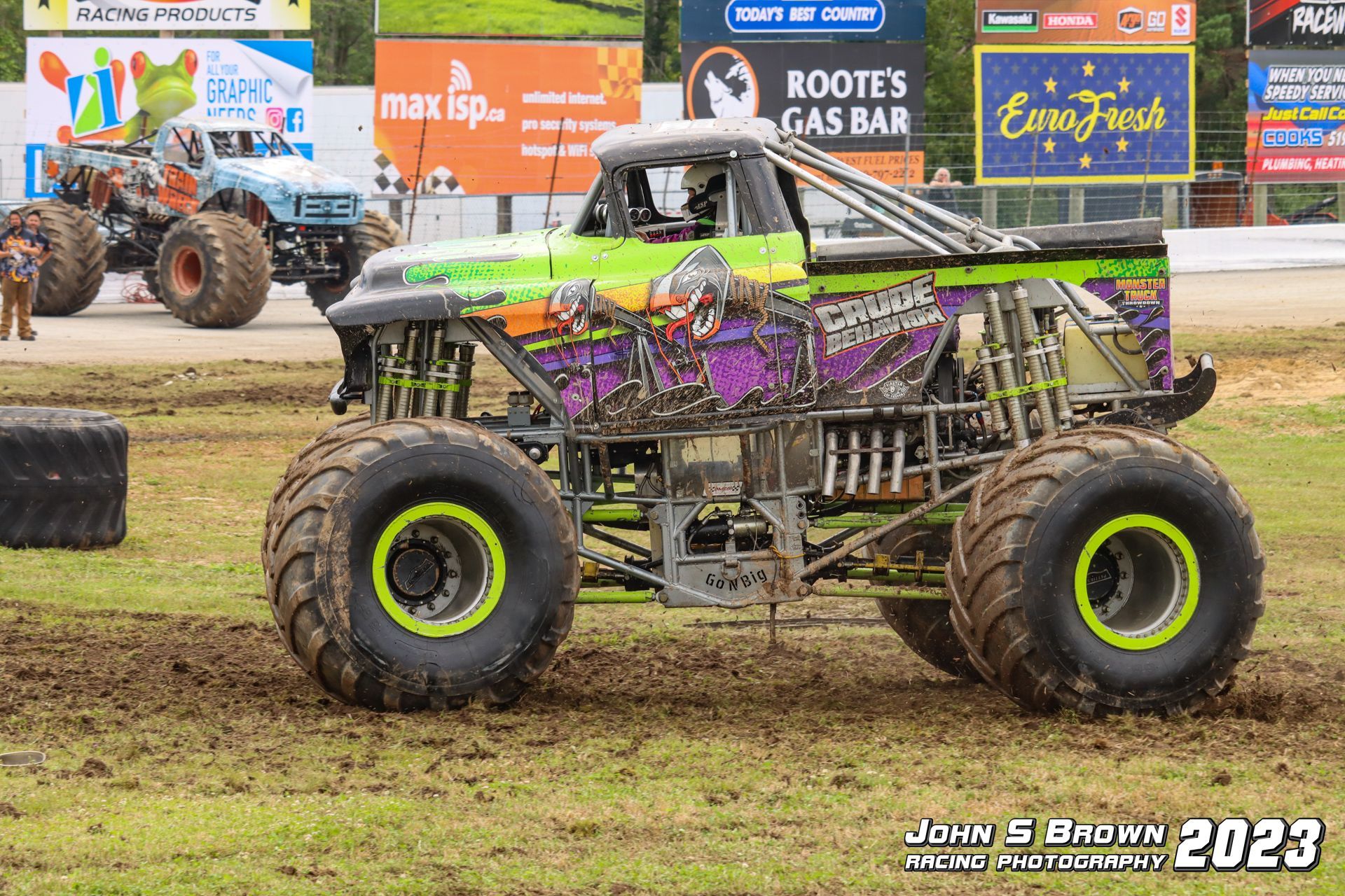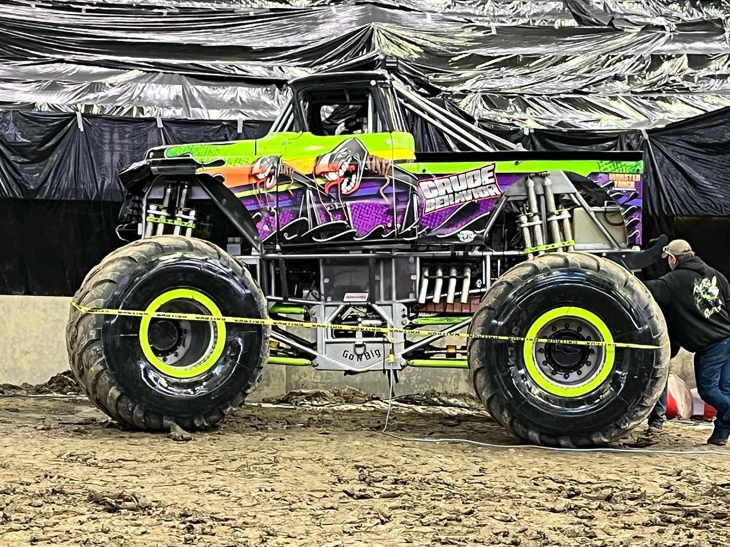 Crude Monster Truck , a premier Canadian monster truck driven by competitor Jared Vogel. Known for its bold oilfield-themed identity and powerful performances, Crude is a regular on the Monster Madness Tour in Western Canada.